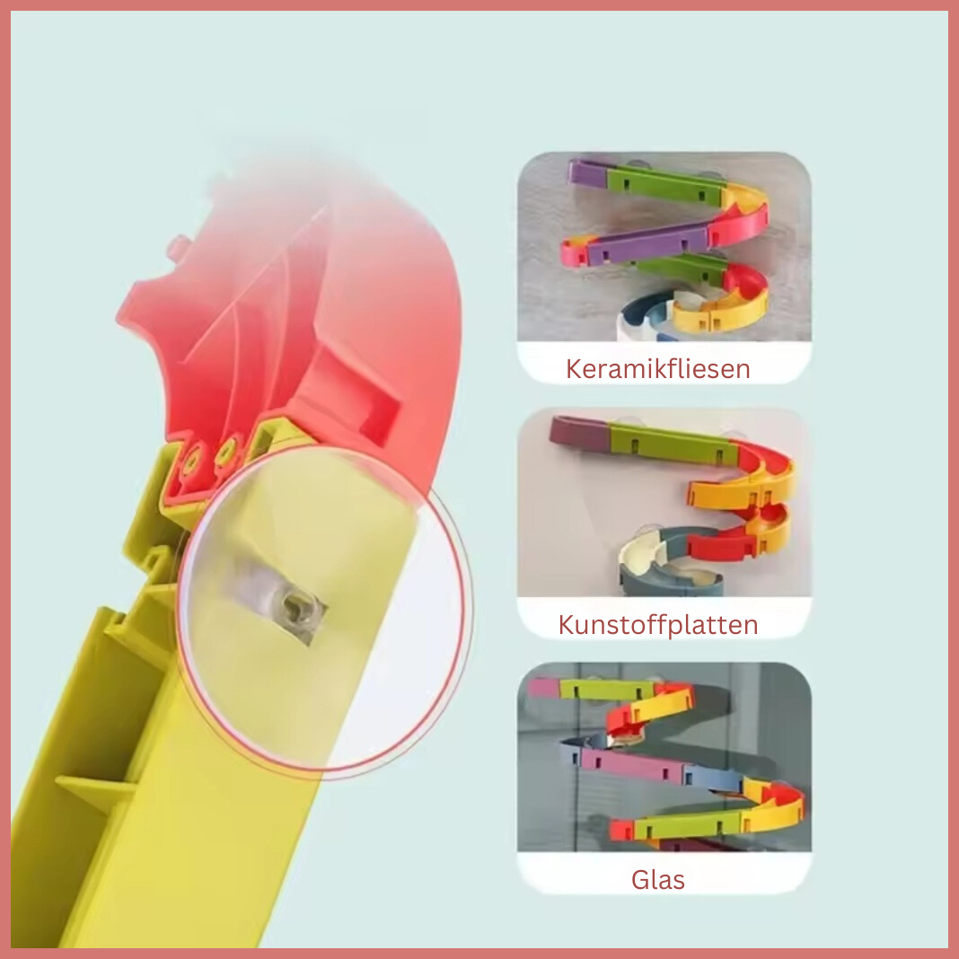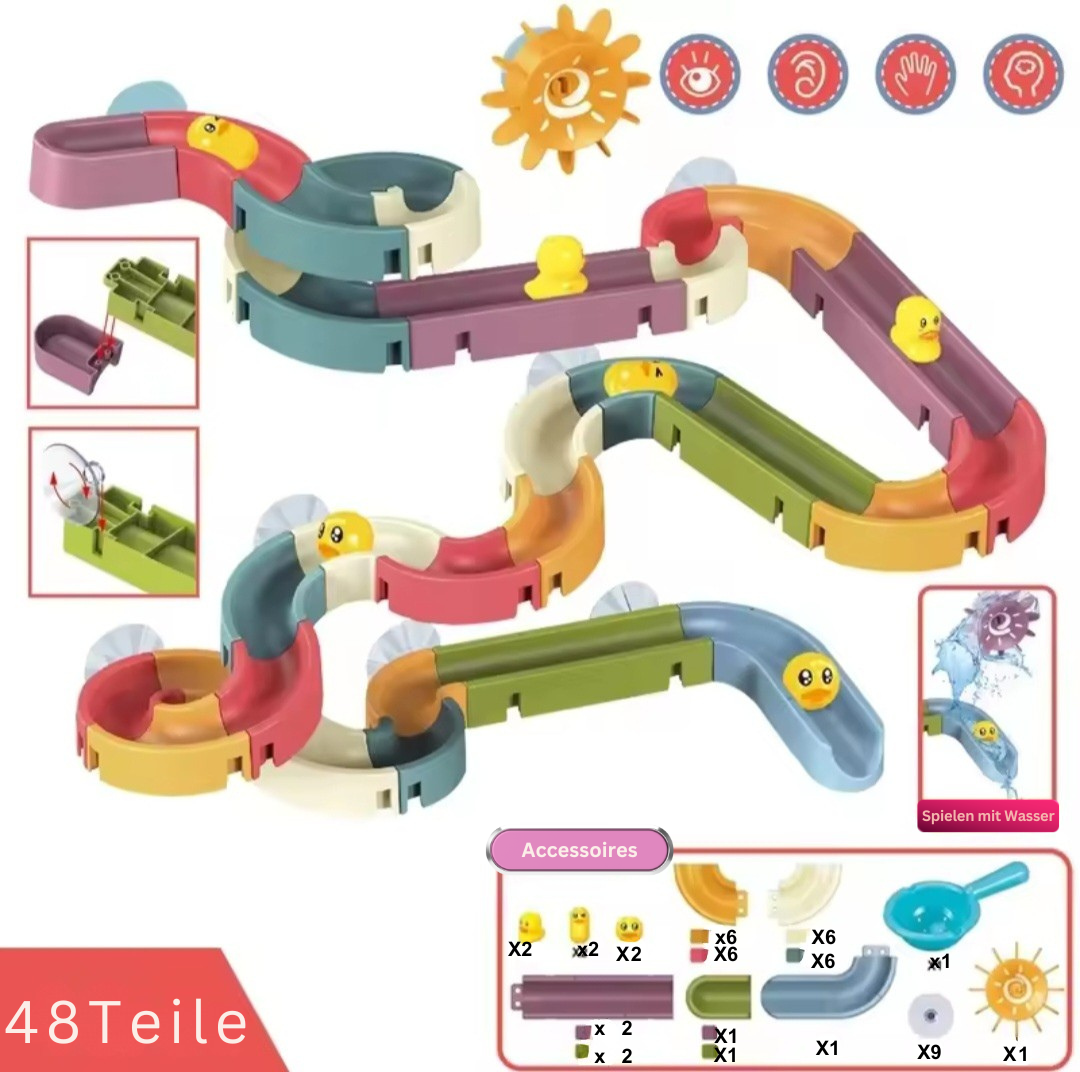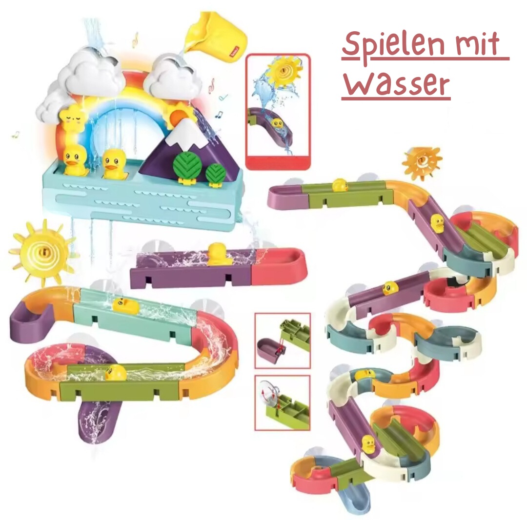 Montage: Das Set enthält Bauteile, die einfach miteinander kombiniert werden können, um verschiedene Wasserbahnen und -strecken zu gestalten. Ihr Kind kann kreativ werden und die Teile nach Belieben zusammenstellen, was die Feinmotorik und das räumliche Denken fördert.