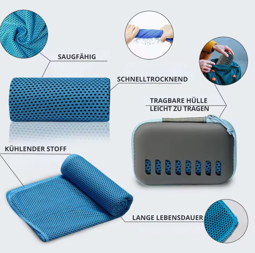 Dieses ultraleichte, atmungsaktive Handtuch bietet eine sofortige Kühlwirkung – einfach anfeuchten, auswringen und auflegen. Ideal für Sport, Outdoor-Abenteuer, Reisen oder heiße Sommertage. Inklusive praktischer Aufbewahrungsbox – kompakt, hygienisch und jederzeit griffbereit. In vielen frischen Farben erhältlich!